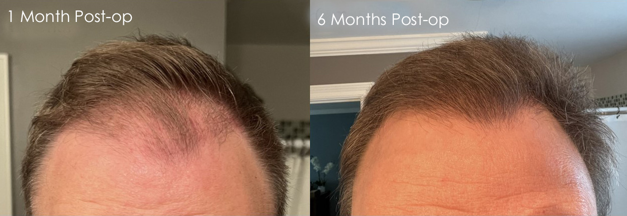 Matt is very excited to see the return of his hair, and sent us a series of selfies taken sequentially during the first six months after transplant. His hair has been growing in gradually and hasn’t yet reached full density.